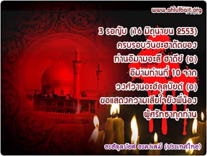 อิมามอะบุลฮะซัน อะลียุนนะกี อัลฮาดีย์ (อ) เป็นผู้นำท่านที่ 10 จากวงศ์วานอะฮ์ลุลบัยต์ของท่านศาสดามุฮัมมัด (ศ) ของบรรดาชีอะฮ์