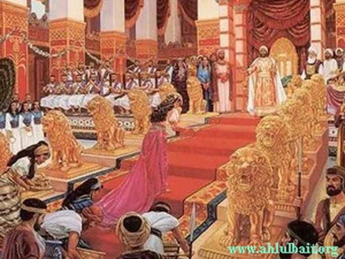 “เขา (สุลัยมาน) กล่าวว่า “โอ้หมู่บริพารทั้งหลายเอ๋ย ! ผู้ใดในหมู่พวกท่านจะนำบัลลังก์ของนางมายังฉัน ก่อนที่พวกเขาจะมาหาฉันอย่างผู้นอบน้อม” (อัล-กุรอาน 27/38)