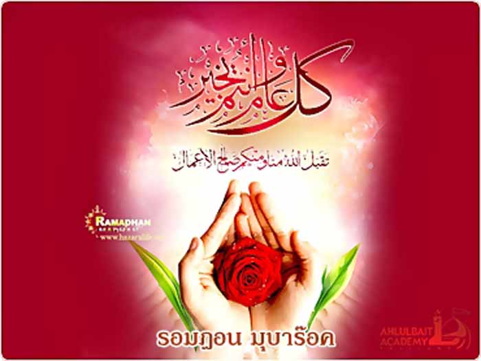 เดือนรอมฏอนอันทรงเกียรติ คือเดือนแห่งพระผู้เป็นเจ้าผู้ทรงยิ่งใหญ่ และเป็นเดือนที่ประเสริฐเหนือเดือนอื่นๆ เป็นเดือนที่ประตูแห่งสรวงสวรรค์ชั้นฟ้า และประตูแห่งความโปรดปรานจะถูกเปิดกว้าง ประตูนรกจะถูกปิดสนิท และในเดือนนี้จะมีค่ำคืนหนึ่งที่การเคารพภักดีต่อพระผู้เป็นเจ้าในค่ำคืนนั้นมีคุณค่าเท่ากับการปฏิบัติกากเคารพภักดีถึงหนึ่งพันเดือน ดังนั้นจงใคร่ครวญและไตร่ตรองเถิดว่า ท่านจะใช้ชีวิตอย่างไรในเวลากลางวันและกลางคืนของเดือนนี้
